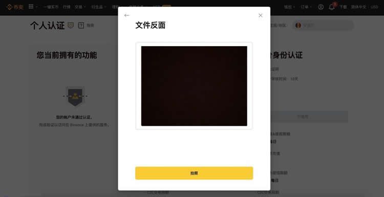 4.登录币安账户,点击【用户中心】-【身份认证】。